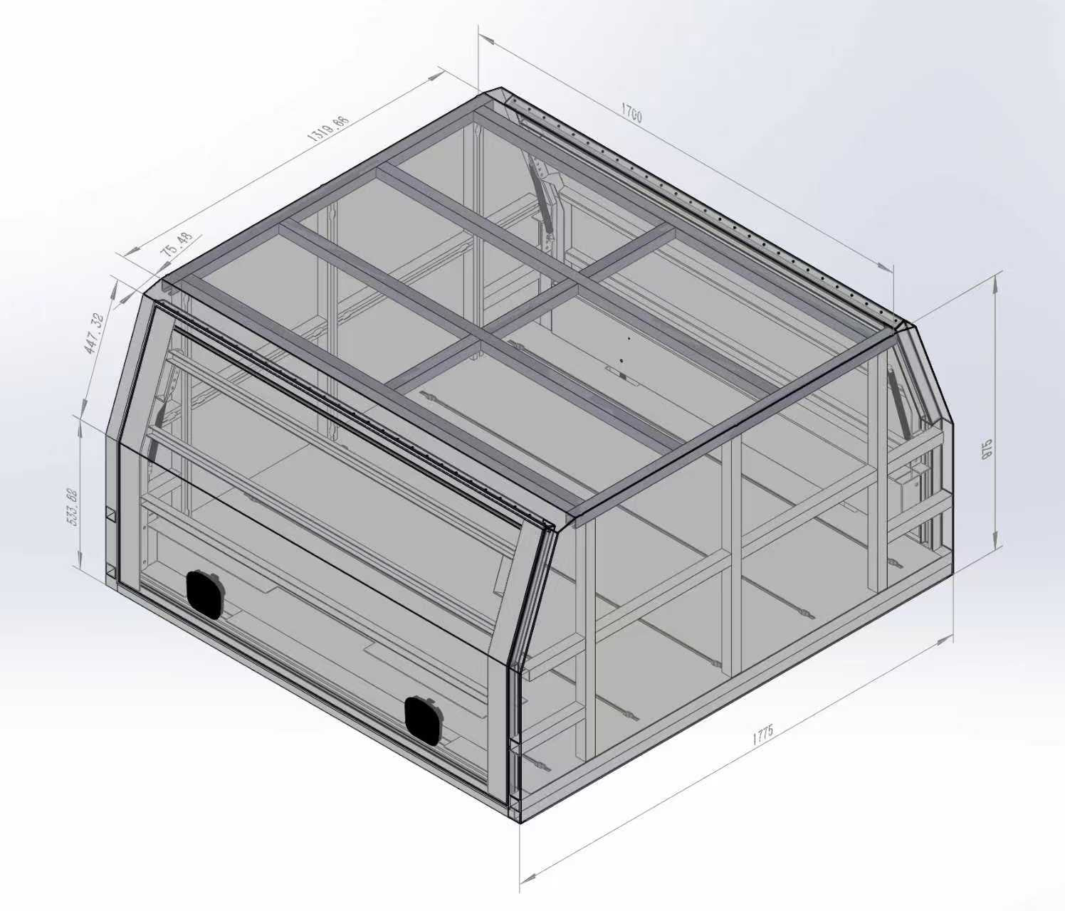 Finished in a tough matte black powder coat and constructed from lightweight, heavy-duty aluminium, this canopy is the ultimate solution for secure, weather-resistant storage. With more internal room than ever, the 1700mm model is ideal for long-haul touring setups, tradie tool organisation, or building out a full rear fit-out.
